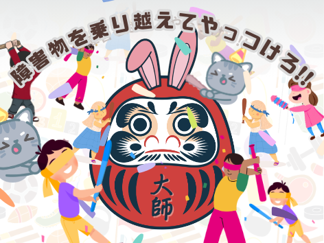 障害を越えて、ゴールにいるだるまをやっつけよう!障害物競走の先にあるだるま(ピニャータ)を壊すと中からpetitプレゼントが!