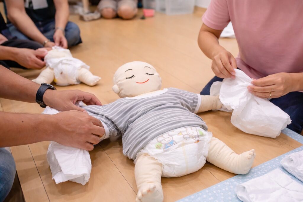 チーム対抗!みんなで赤ちゃん人形のおむつを替えよう!