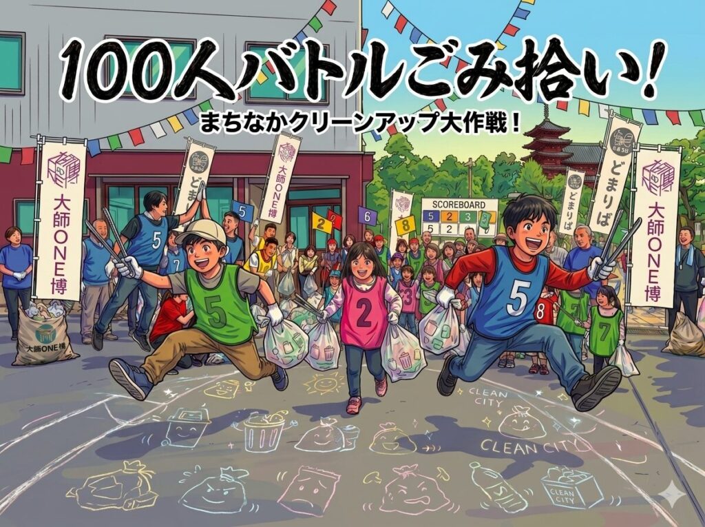 チームに分かれて、ゴミを拾って、みんなでバトル!ゲーム感覚でまちをピッカピカにしちゃおう!