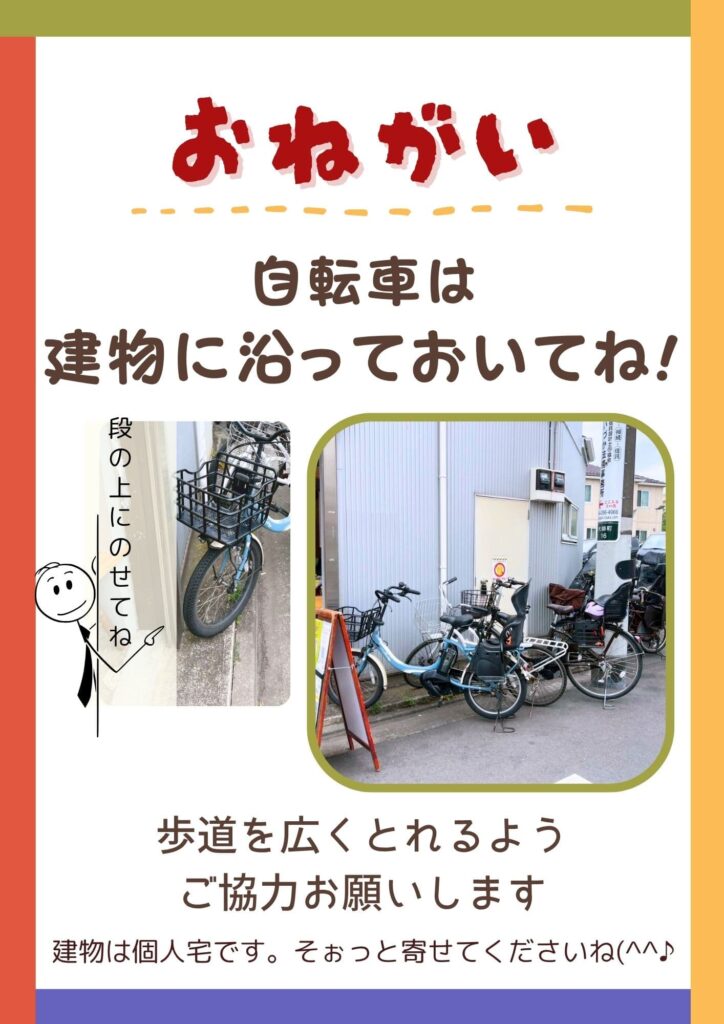 ●自転車:カフェの壁に沿わせて駐輪可能です。