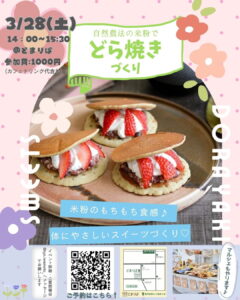自然農法の米粉でもちもちどら焼きをみんなで作って食べよう!